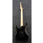 The 7-String GRG7221 features a quilted art grain top on a poplar body bolted to a maple neck with a 24-fret treated New Zealand pine fingerboard with white dot position markers. Components include a pair of Ibanez Infinity R humbucking pickups, an F107 fixed bridge and Ibanez die-cast tuning machines.