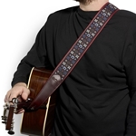 Martin 18A0188 Retro Jacquard Leather Guitar / Bass Strap, Burgundy Blue Festival