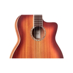 The C4-CE's solid African Mahogany top provides a crisp, articulate tone, combined with African Mahogany back and sides for balanced volume and sustain. The construction is based upon our traditional Spanish classical guitar, with the inclusion of a soft cutaway and a slightly thinner 50mm-width neck designed for comfortable playability and easy upper-register reach. Premium design elements such as a Maple binding, Abalone rosette, and a striking Edgeburst finish will help you stand out from the crowd. The Fishman Presys VT Pickup System produces a rich and natural sound when amplified, and puts the soundhole-mounted controls at your fingertips - perfect for gigging and recording.