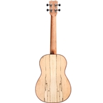 The new, 24 series ukuleles offer a combination of exotic tone woods. Spalted Maple back and sides offer a unique look and tone, while a solid Spruce top projects a voice much larger than its size suggests. Deep red, Padauk body and fingerboard binding, combined with a Padauk rosette, add a beautiful pop of burgundy to their already striking appearance. Additional features include a Mahogany neck and spalted Maple headstock veneer and a satin polyurethane finish. Available in soprano, (24S), concert (24C), tenor (24T), tenor with cutaway and electronics (24T-CE) and baritone (24B).