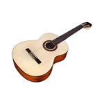 Based on Córdoba's flagship C5, the C5 Spruce adds a new option to a fan favorite. Perfect as a first nylon-string guitar, this lightweight model is built with a solid Engelmann Spruce top and Mahogany back and sides to produce a clear, powerful tone with beautiful sustain. Handmade in the traditional Spanish style, the C5's carved headstock, hand-inlaid wood rosette, Pau Ferro binding, Savarez strings, and glossy PU finish result in a guitar that truly stands out from all other entry-level options. A lightweight adjustable truss rod is built into the neck for stability. Available in Natural finish with solid Engelmann Spruce top.